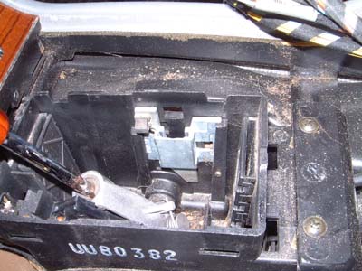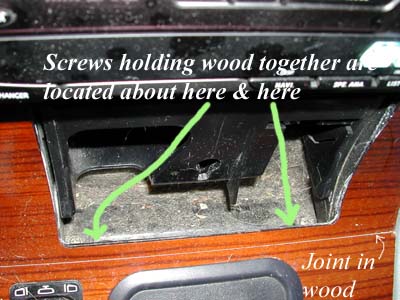 lifted, the console wood is removed by pulling forwards to disengage 2 tangs