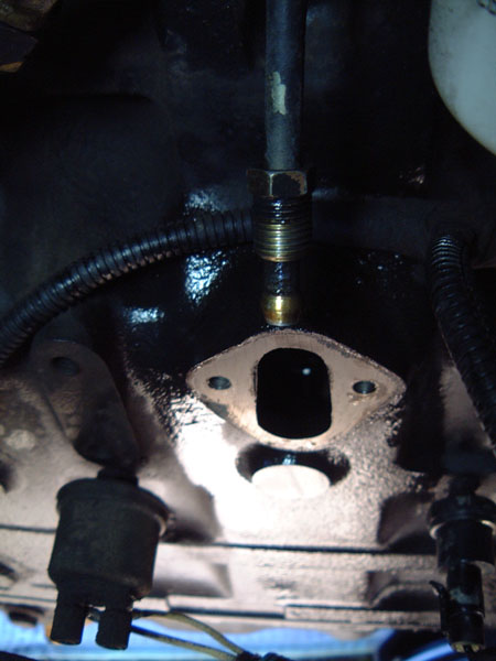 Clean off the gasket surface on the engine block. A gasket scraper, putty knife or razor blade works well. Just don't scratch the mounting surface or get pieces of gasket into the open hole in the block.