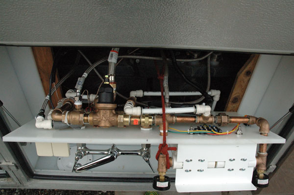 | Add electric heat to the plumbing system in the wet bay so that the holding tanks and plumbing could be kept from freezing with electricity as an alternative or back-up to the propane furnace. |