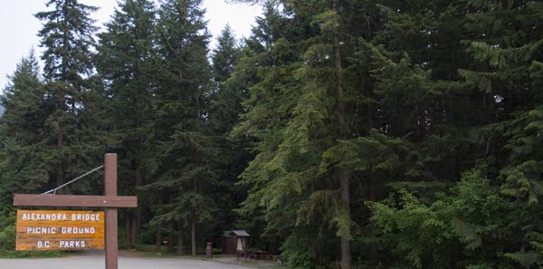 Alexandra Bridge Picnic Grounds park. We had the place to ourselves, so he