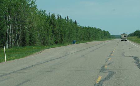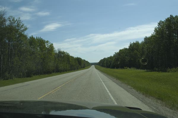 The highway in Alberta - much greener than we remember from the Canada #1 further south