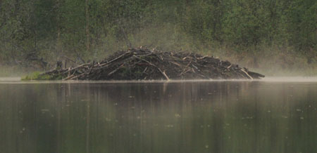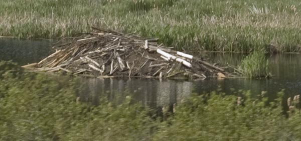 One of a zillion beaver lodges in the many, many lakes along the highway.