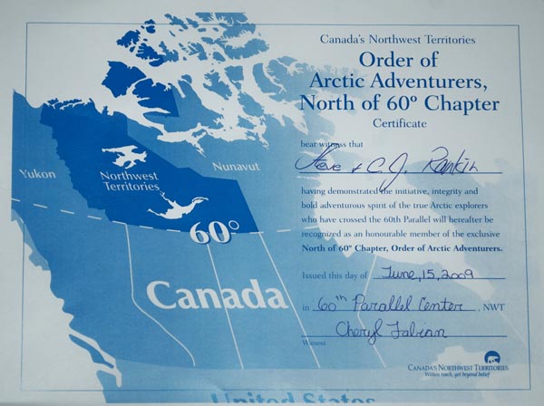 Territories border. The folks inside gave mom & dad the certificate below