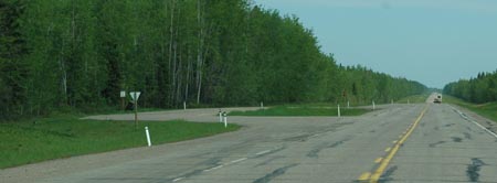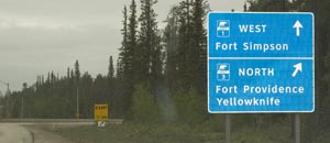Turning onto Highway 3 to Fort Providence and Yellowknife.