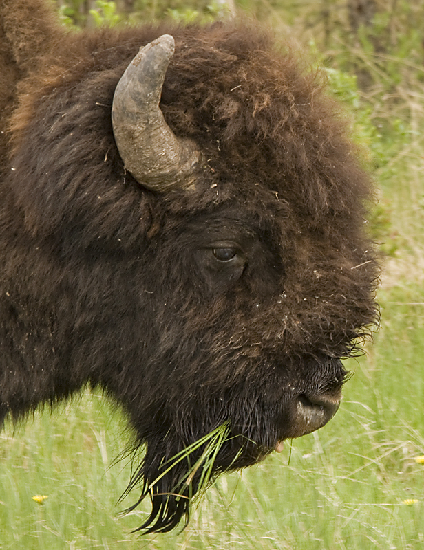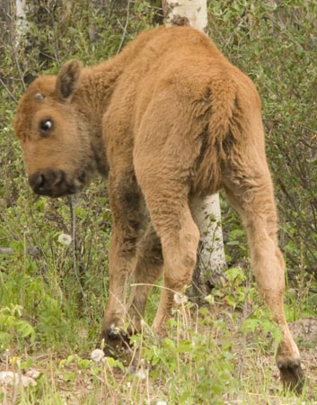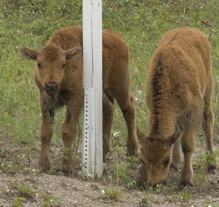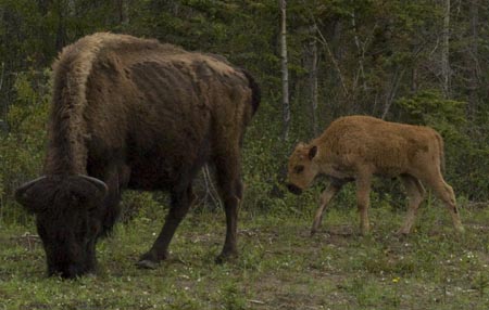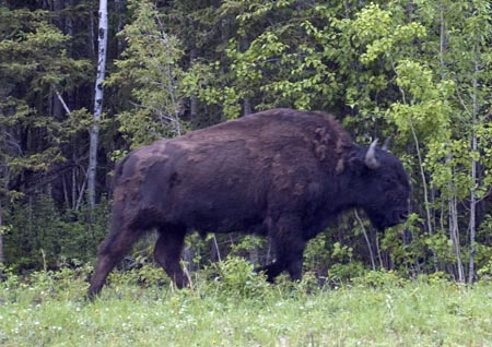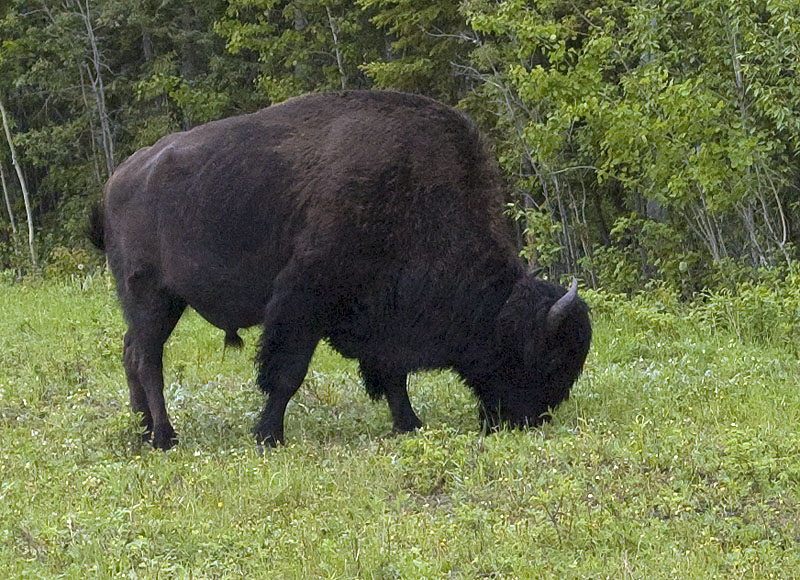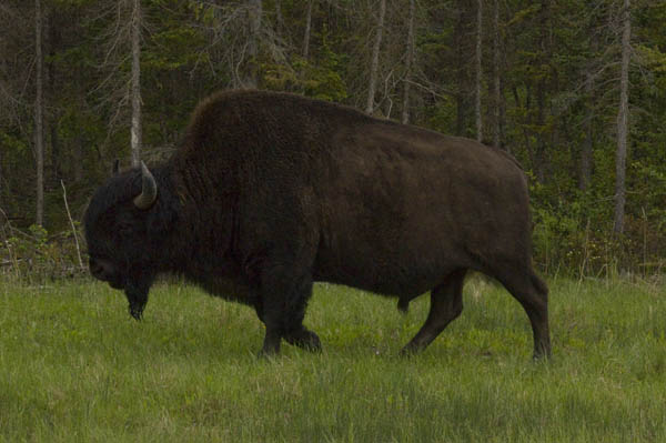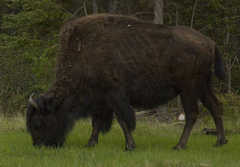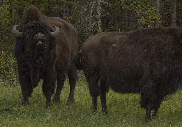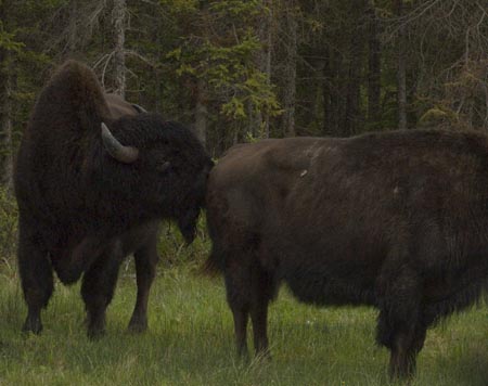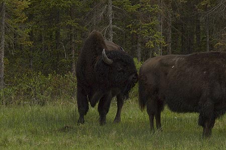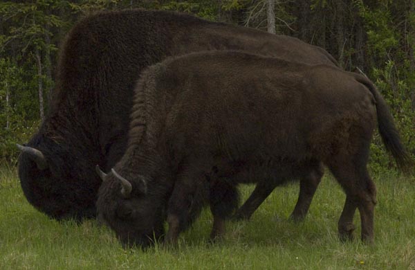 This photo shows the subtle differences in curvature between the horns of the male and female Wood Buffalo. That and the relative size are the only clues that the Gov't brochure gives to tell the difference between the boys and the girls.