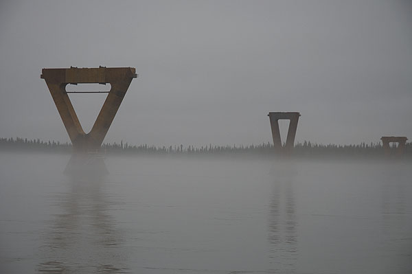 The Deh Cho Bridge under construction. Taken from the ferry.