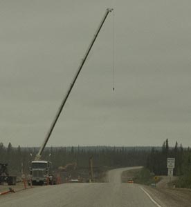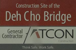 Construction on the Peace River Bridge narrows the bridge to just one lane. Note how skinny that lane is. We had just 1 foot of clearance on each side so I had to keep the rig in the straight & narrow middle.