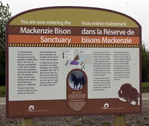 Informational signs about the Wood Buffalo along the highway