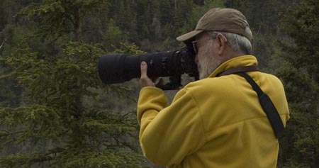 up his camera to take photos of the ravens that were scavenging the fire pit so