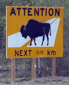 A rare sign in western Alberta. There is a huge bison