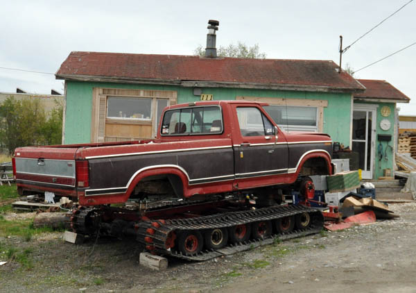 A close-up of the type of grill guard almost every truck up here has. These guards are 3/8" thick and designed to stop a moose with no damage to the truck or grill guard. Needless to say, dad wants one for his truck!