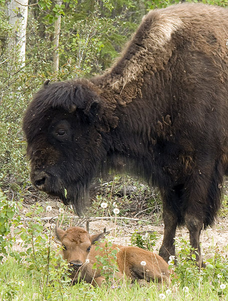 A momma bison and her calf
