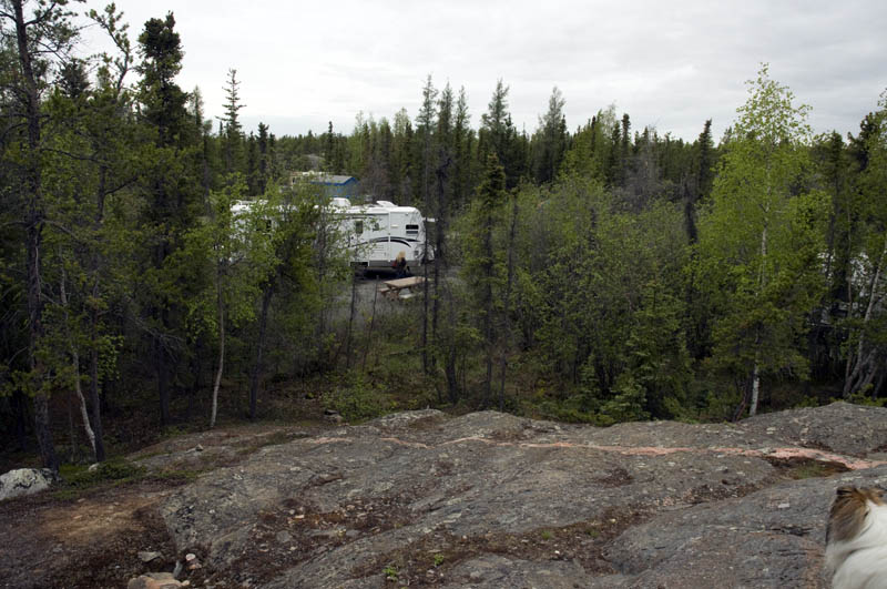 Our campsite at Fred Henne Territorial Park viewed from the top of some exposed "Canadian Shield" - preCambrian bedrock that covers 1/3 of Canada