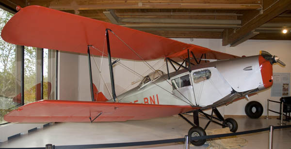 1932 Fox Moth airplane. Note the cabin windows; 3 lucky passengers get crammed into that cabin. Also very unusual for the era is the enclosed cockpit for the pilot.