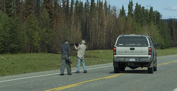 CJ took this photo of an Alaskan guide (grey sweater) that's envious of my 150-500mm zoom. Of course, I was envious of his new Nikon D3x compared to my D90. Oh well.