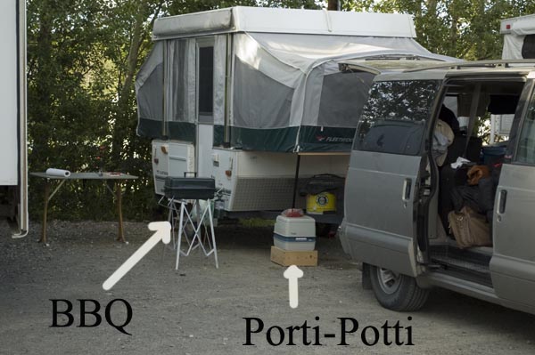 The guys next to us at the RV park give evidence as to why we don't have a pop-up camper. Something about privacy, I guess.