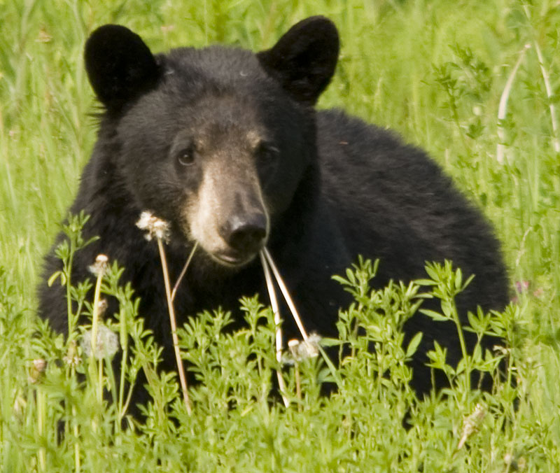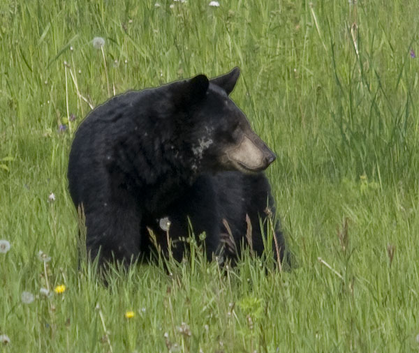 This bear was eating on the periphery of a group of bison. Proof that the two species can feed together and get along.