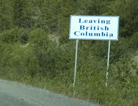 Actually, the Road crosses back and forth something like 7 times between British Columbia and the Yukon, but this sign indicates that we're done with that.