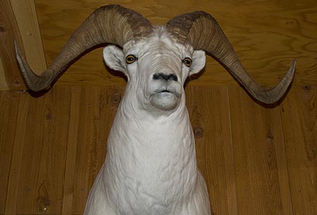 A male Stone Sheep. The males are a lot harder to find, so we resorted to a museum display.