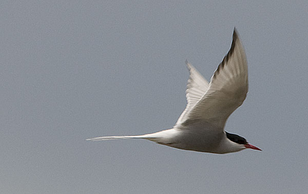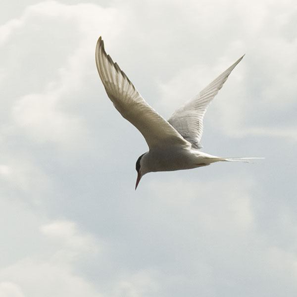 At first, I thought this was an Arctic Tern, but after comparing the photos with the details in the books, we determined that it's a Common Tern. The Tern flies about 20-30 feet above the water while intently looking down for a fish. Once spotted, he hovers a moment and then plunges for the catch.