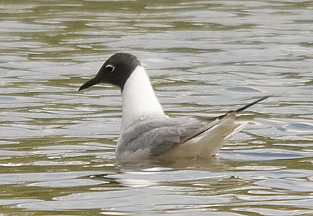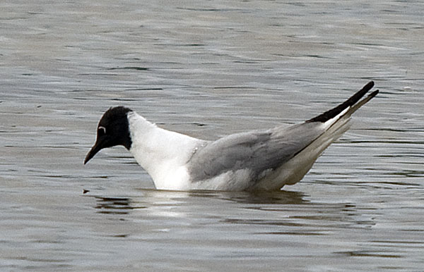 The next bird faked me out even more so. Since he was fishing along the same strip of lake shoreline, I initially assumed that he was another tern, but his flight pattern was much closer to the surface. Then he landed on the water and continued fishing from the surface. It was then that I noticed that he was a different species. CJ guessed correctly that he was a gull; an idea that I scoffed at. Since he turned out to be a Bonaparte's Gull, I got to eat some crow even though we haven't seen any of those since we left home.