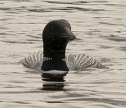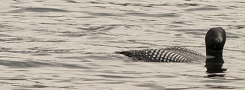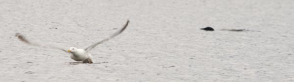 I've been trying to work on my ability to capture birds in flight. If you saw the bazillion blurry photos I've got, you'd know that I've got a long way to go yet. But, sometimes there's something interesting in the photo. I saw something surface several hundred yards across the lake that the nearby gull didn't like. At first I thought it might be a beaver, but in the photo you can see that it's a Loon. Luckily for me, the Loon worked a course that brought him quite a bit closer.
