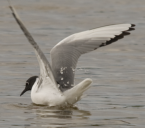 When I first spotted the Bonaparte's Gull, he was flying just over the surface and skimming the water with his beak. Why? I haven't a clue.