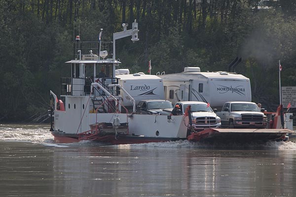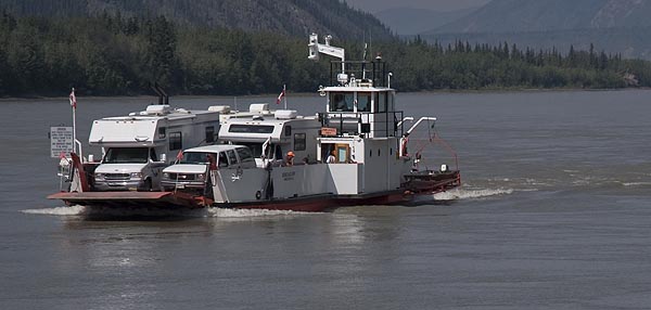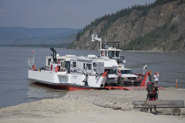 Unlike the other ferry operators we've experienced who finesse the landings, this guy gets close and rams the boat ashore. At least the approach isn't very challenging compared to those earlier in the Northwest Territories.