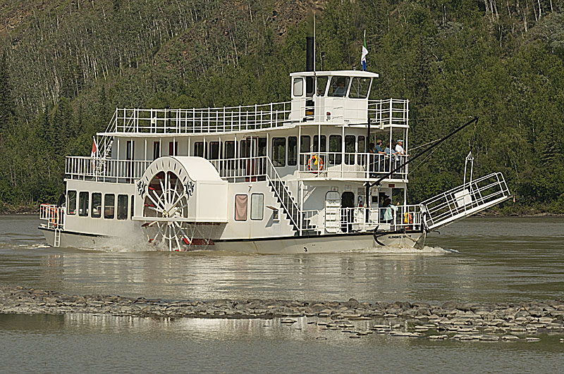 The Klondike Spirit is a modern sidewheeler tour boat that runs out of Dawson. These photos were taken from the bank at our campsite.