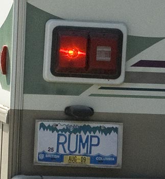 The motor home in front of us in line at the ferry had an interesting license plate.