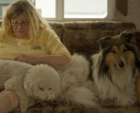 Another view of the campground. Gracie is standing in front of the truck. Yes, it's just as crowed as it looks.