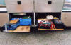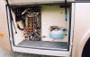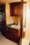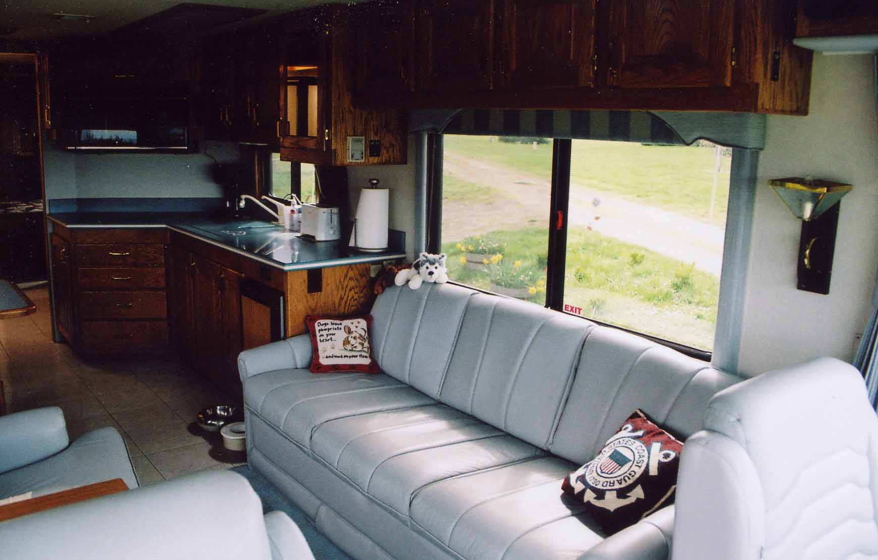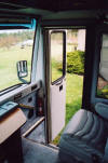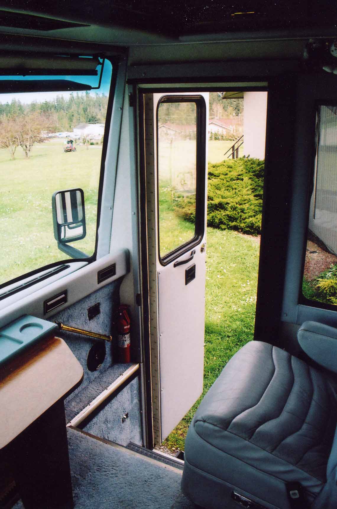 The first set of photos were taken with a Minolta 2000 35mm SLR. Between the combination of a blue tinted windshield and Ice Blue interior the print film didn't record wasn't able to accurately render the colors or tones of the interior. The blues are too deep and the wood is too dark. Newer photos taken with our Nikon D70s are below with much more accurate colors.