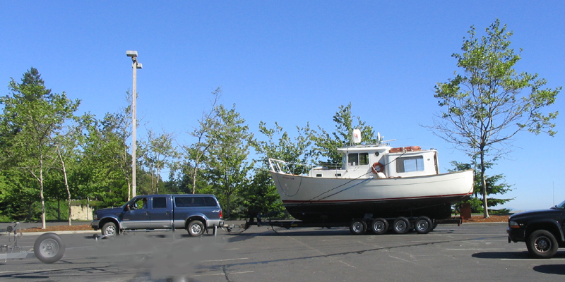 Here's a picture of Pilgrim just after we hauled her with our F350 PSD. She pretty much dwarfs that big pickup, huh?