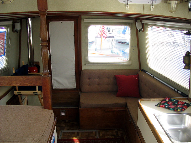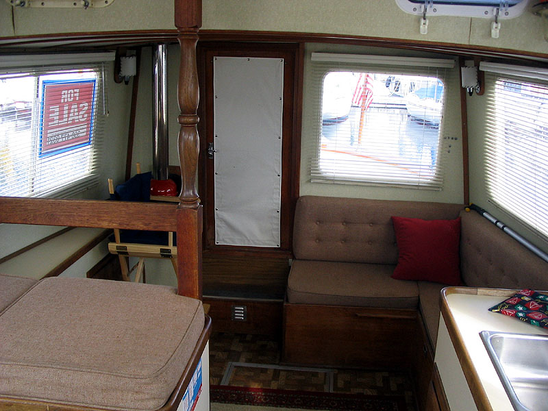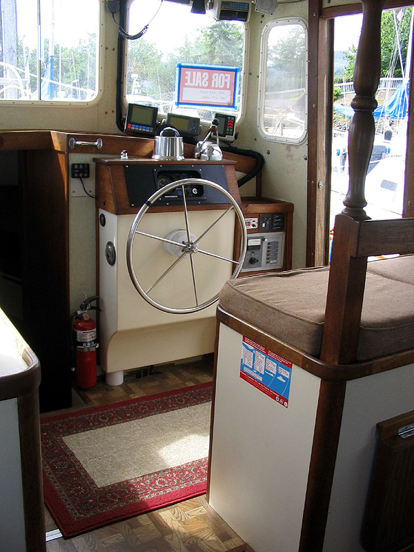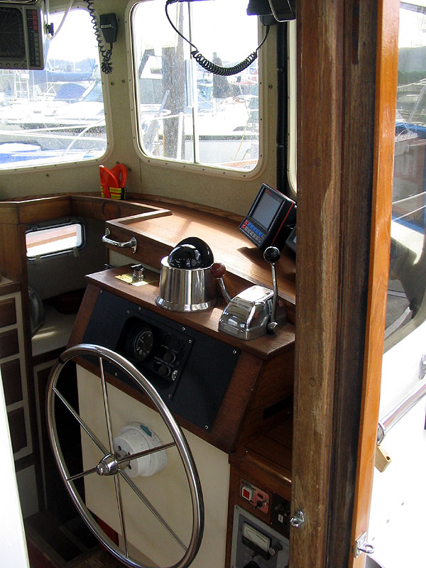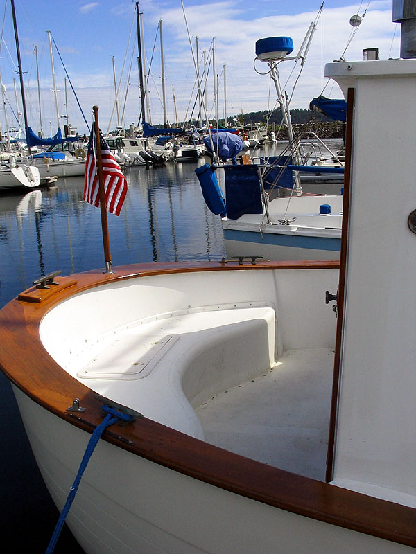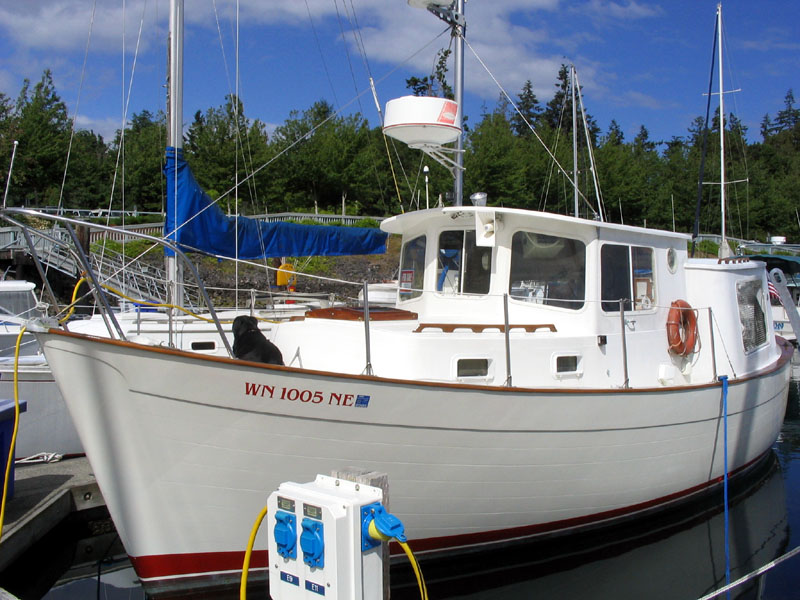 Built in 1974, Pilgrim is a full displacement troller. Most folks think she's a trawler, but it's more accurate to describe her as a troller. She was built to travel slowly, but very efficiently. She cruises easily at about 6 knots and has a top speed of about 6.5 knots. She was re-powered in 2003 with a 40 horsepower 4-cylinder Westerbeke diesel.
