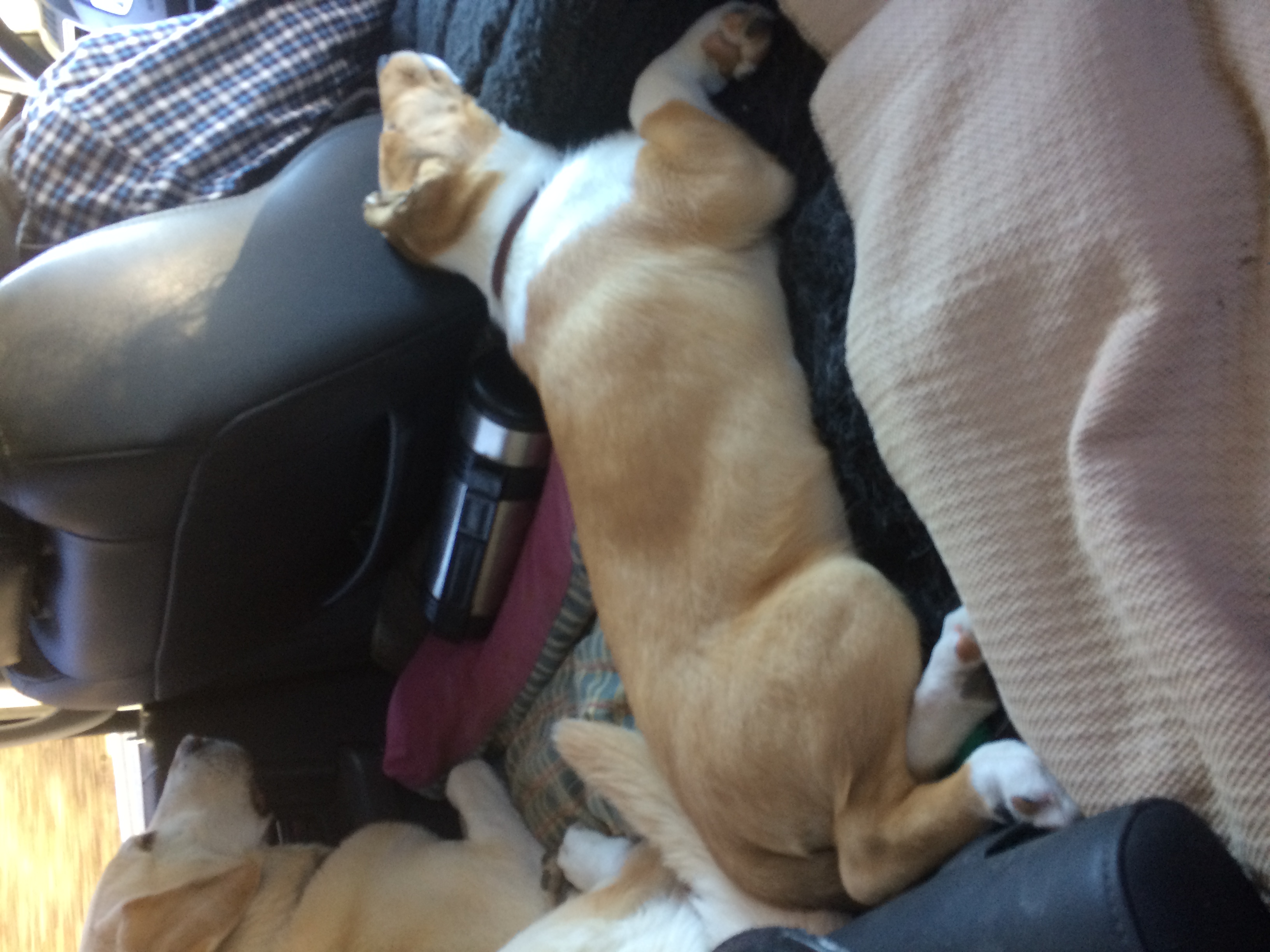 Usually I lie on the console between mom & dad. I like