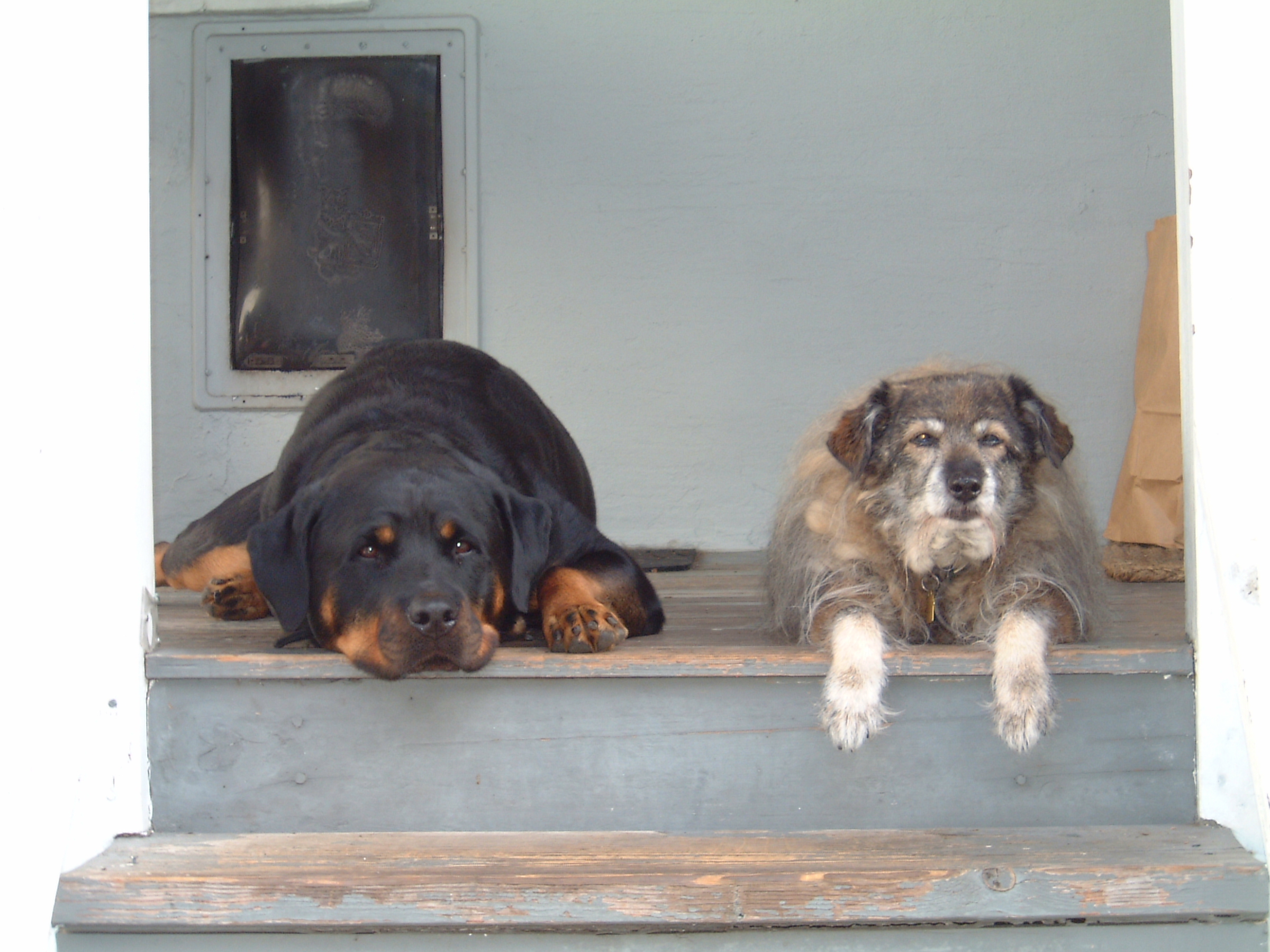 Grandma and her body guard, just hanging out on the stoop. |