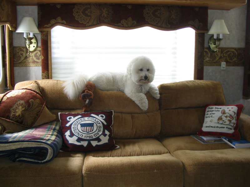![]() Gracie thinks she's such a princess sometimes. Especially when she's on mom & dad's bed in the motorhome. Bo'sun |