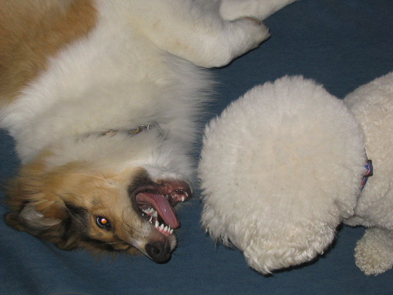 ![]() That's one of my dumb brothers. Chewing on a rope when he could be chewing on some really good shoes or something. Allie |