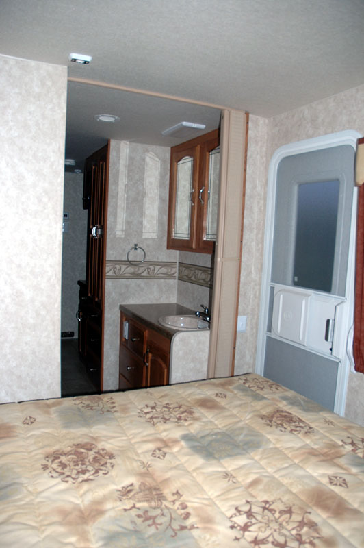 Looking back torwards the entrance door is the TV stand and forward wardrobe